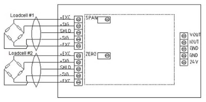 - Bước 3: Đặt đầy tải hoặc một điểm tải như n% F.S lên cảm biến lực/cân/sàn cân, sau đó điều chỉnh POT (Biến trở) tại vị trí có được đánh dấu 'SPAN' để tạo ra dòng điện hiện tại ở 20.000 mA hoặc 4 + n% * 16. Cách điều chỉnh POT như bước trên.