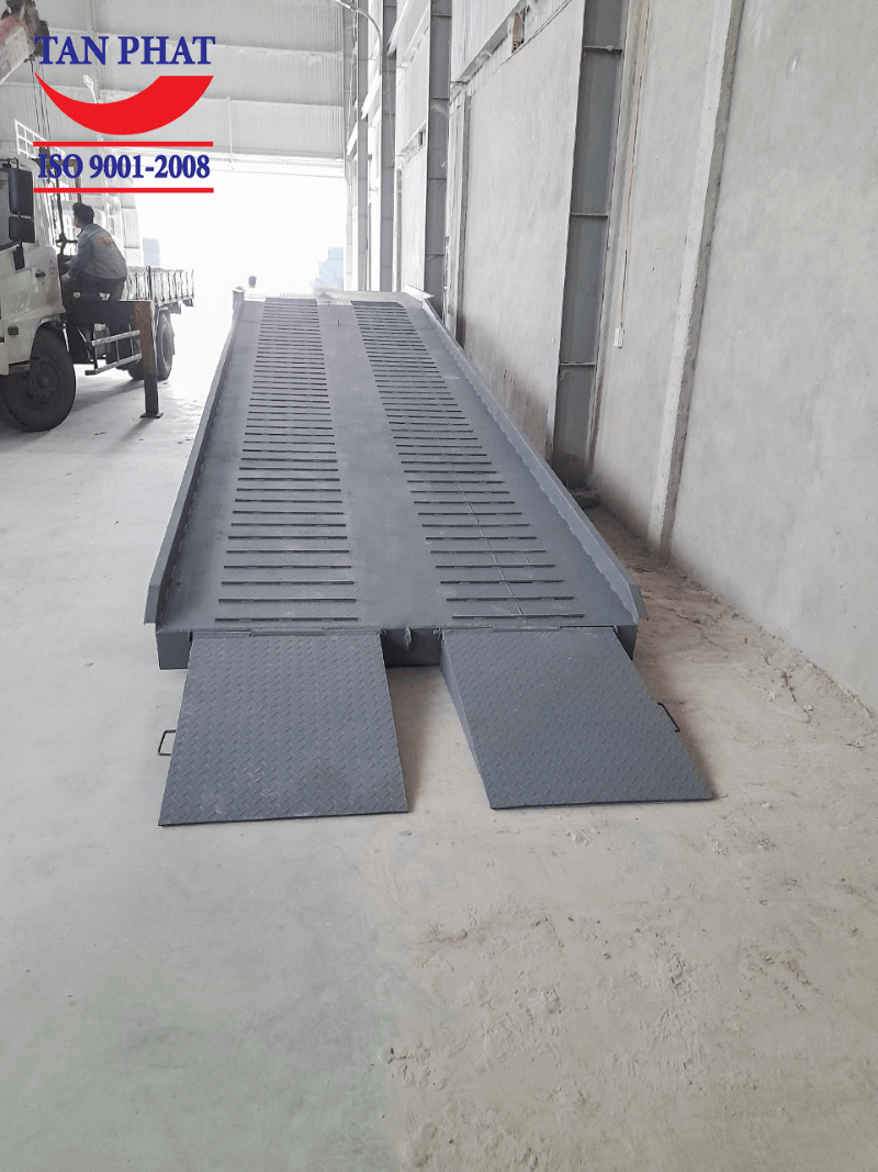Cầu có kích thước 11000x2400mm, tải trọng 10 tấn, chống trượt thép phi gân. Kết cấu cầu hoàn toàn phù hợp với đặc trưng hàng hóa của doanh nghiệp khách hàng.