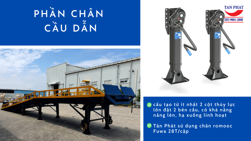 Với chất liệu hoàn toàn bằng sắt thép, cầu có thể dễ dàng di chuyển từ vị trí này sang vị trí khác. Đặc biệt, chân chống romooc có thể thay đổi chiều cao, độ dốc phù hợp với nhu cầu sử dụng.
