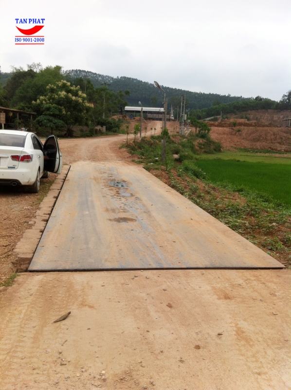 Hình ảnh cân ô tô điện tử 80 tấn - 12m x 3m lắp đặt bởi công ty Tân Phát tại tỉnh Lào Cai. Cân được lắp đặt hoàn thiện với kết cấu bàn cân loại khung thép U đúc. Toàn bộ cầu cân 12 mét để có 2 nhịp, mỗi nhịp dài 6m.