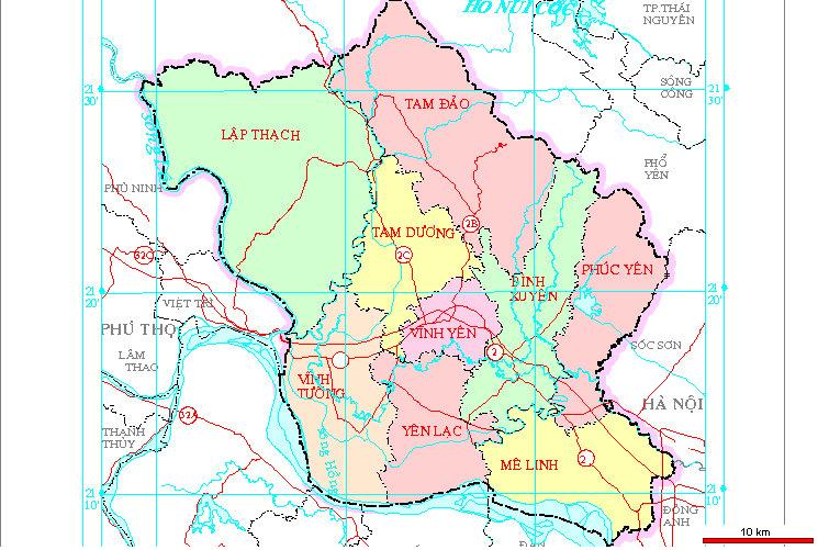 Vĩnh Phúc nằm ở vùng đỉnh của châu thổ sông Hồng, khoảng giữa của miền Bắc nước Việt Nam, Phía bắc giáp hai tỉnh Thái Nguyên và Tuyên Quang, đường ranh giới là dãy núi Tam Đảo. Phía tây giáp tỉnh Phú Thọ, ranh giới tự nhiên là sông Lô. Phía nam giáp Hà Nội, ranh giới tự nhiên là sông Hồng. Phía đông giáp hai huyện Sóc Sơn và Đông Anh – Hà Nội. Tỉnh Vĩnh Phúc có 137 đơn vị cấp xã gồm 15 phường, 12 thị trấn, Thành phố Vĩnh Yên, Phúc Yên. Các huyện có huyện Bình Xuyên, Lập Thạch, Sông Lô, Tam Đảo, Tam Dương, Vĩnh Tường, Yên Lạc